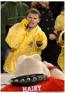Throughout the year, we realized more and more that we were experiencing something special. As the Georgia game quickly approached, everyone on the Yellow Jacket side became extremely confident. The victory over Georgia meant many things...respect, pride, and Bobby Dodd's winning streak was kept intact. However, this victory does not deserve a commemorative ring. Getting caught up in this excitement puts us just barely above Georgia retiring Theron Sapp's jersey for ending "The Drought". After the game, Paul Johnson said it best when someone asked him why he didn't take any of the "hallowed" hedge. He said (and I paraphrase) "I'll act like I've been there before."